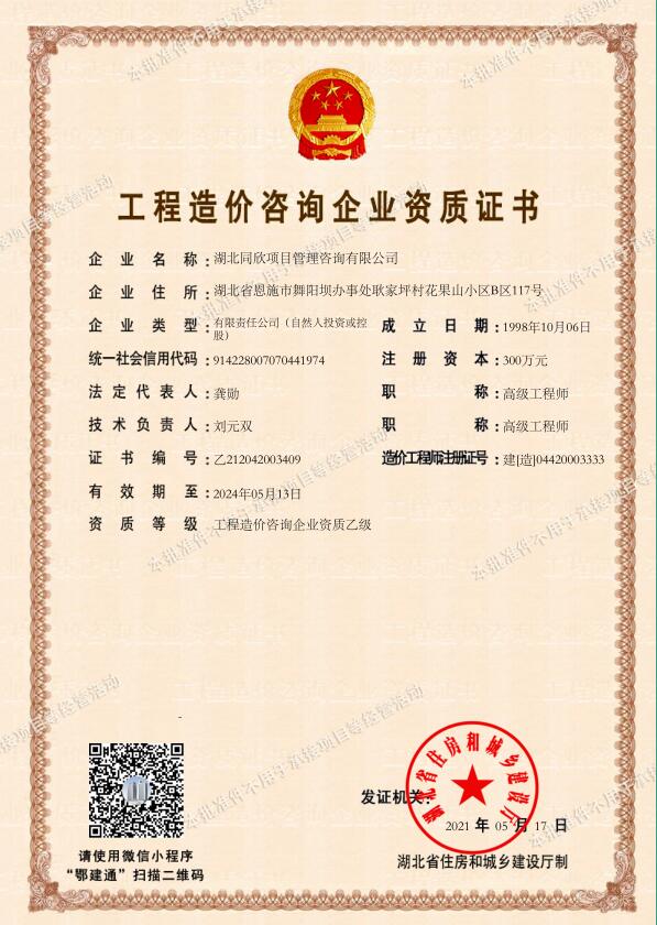 工程造价咨询企业乙级资质证书