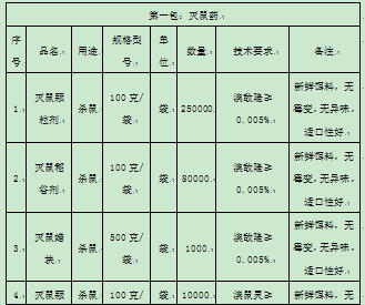 ¡¡¡¡ËÄ¡¢ÏîĿԤË㣺×ÜÔ¤Ëã91ÍòÔª¡£¡£¡£¡£µÚÒ»°ü£ºÃðÊóÒ©31ÍòÔª£»£»£»£»£»µÚ¶þ°ü£ºÃðÎÃÓ¬Ò©29ÍòÔª£»£»£»£»£»µÚÈý°ü£ºÃðó¯Ò©31ÍòÔª£¨´ËÔ¤ËãΪ×î¸ßÏÞ¼Û£¬£¬£¬£¬£¬Í¨³£±¨¼ÛÁè¼Ý´ËÔ¤ËãͶ±êÎÞЧ£©