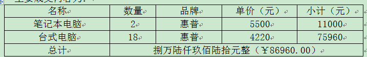 | 名称 | 数目 | 单位 | 单价(元) | 小计(元) |